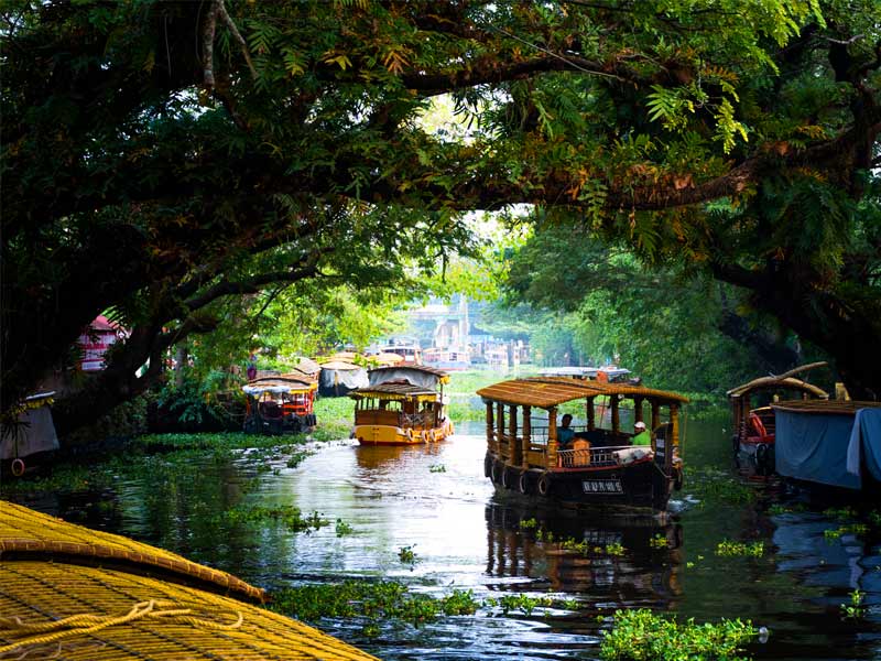 Explore Kerala backwaters on serene houseboats with traditional cuisine.